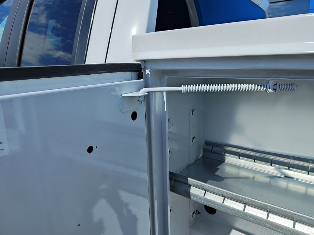 Reading SL Service/Utility Body. 8 Standard Line single wheel steel service body. 98L x 77.5 W x 40H. 48 floor width. Masterlocks, Adjustable slotted shelving, 20 Adjustable dividers, stainless steel. Bolt on hinge. Stainless steel rotary paddle latches, Spring Loaded door holders. Treadplate Floor, Slam action tailgate. 5 Understructure. LED combo rear lights. 6 year limited warranty, Active Cruise Control.