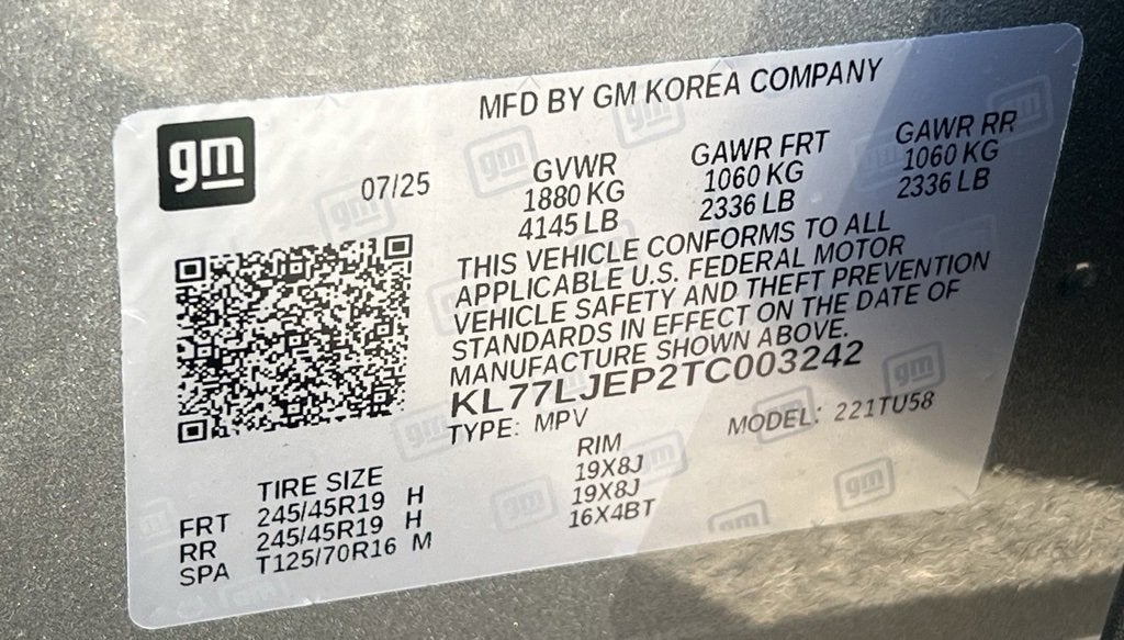 - Tires, 245/45R19 all-season, blackwall