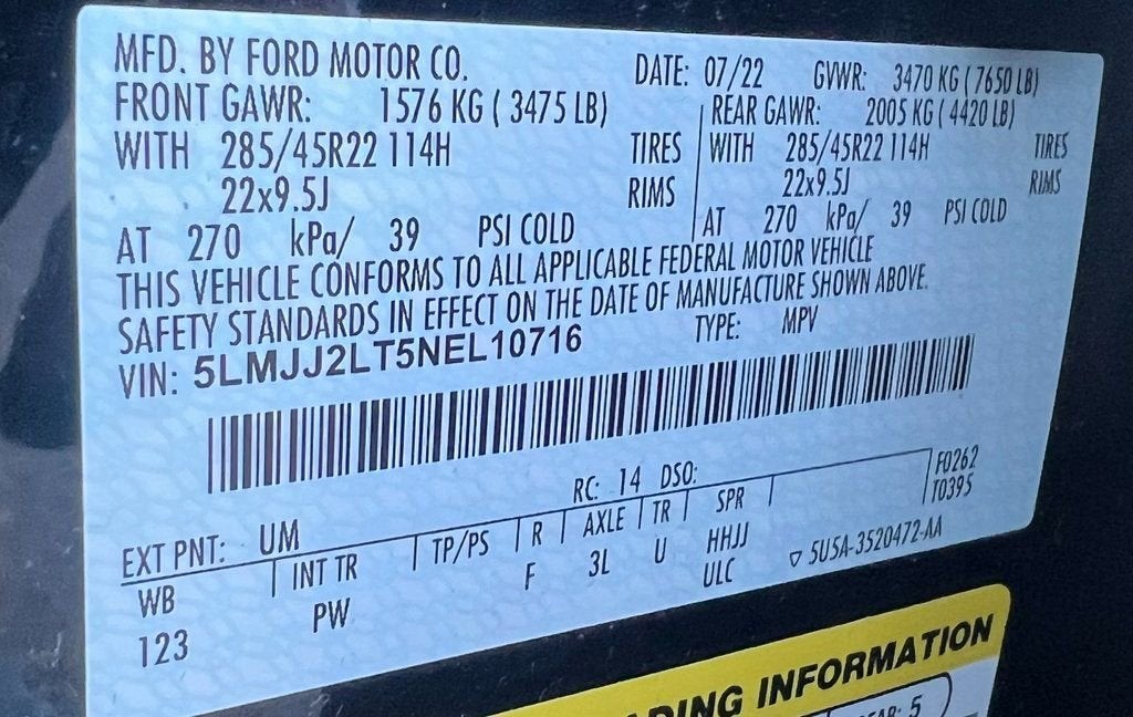Navigator Reserve, 4D Sport Utility, V6, 10-Speed Automatic, 4WD, Infinite Black Metallic Clearcoat, Black Onyx Leather, 3rd row seats: split-bench, 4-Wheel Disc Brakes, ABS brakes, Adaptive suspension, Adjustable pedals, Air Conditioning, Alloy wheels, Auto High-beam Headlights, Auto tilt-away steering wheel, Auto-dimming Rear-View mirror, Auto-leveling suspension, Automatic temperature control, Delay-off headlights, Driver's Seat Mounted Armrest, Dual front impact airbags, Dual front side impact airbags, Emergency communication system: 911 Assist, Equipment Group 201A Reserve I, Four wheel independent suspension, Front anti-roll bar, Front Bucket Seats, Front fog lights, Fully automatic headlights, Head restraints memory, Heads-Up Display, Heated front seats, Heated rear seats, HVAC memory, Illuminated 1st & 2nd Row Seat Belts, Lincoln Lit Star in Grille, Low tire pressure warning, Luxury Package, Memory seat, Navigation system: Connected Navigation (3-year trial), Occupant sensing airbag, Overhead airbag, Pedal memory, Perfect Position Seats (30-Way) w/Active Motion, Power adjustable rear head restraints, Power driver seat, Power moonroof: Panoramic Vista Roof, Power passenger seat, Power steering, Power windows, Radio: Revel AM/FM/HD/MP3 Audio System, Rain sensing wipers, Rear air conditioning, Rear anti-roll bar, Rear window defroster, Rear window wiper, Reclining 3rd row seat, Remote keyless entry, Revel Ultima 3D Audio System w/28 Speakers, SiriusXM w/360L, Speed-sensing steering, Speed-Sensitive Wipers, Split folding rear seat, Steering wheel memory, Steering wheel mounted audio controls, SYNC 4 Communications & Entertainment System, Traction control, Variably intermittent wipers, Ventilated front seats, Ventilated rear seats, Voice-Activated Touchscreen Navigation System.