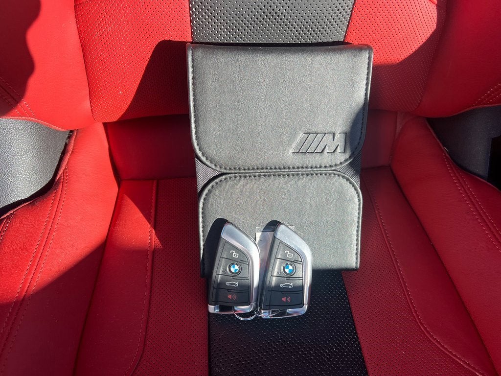 Automatic temperature control, BMW Head Up Display, Dual front impact airbags, Executive Package, Exterior Parking Camera Rear, Front dual zone A/C, harman/kardon® Speakers, Heated Steering Wheel, M Carbon Exterior Package, M Compound Brakes w/Red Calipers, Moonroof, Navigation System, Power Tailgate, Remote Engine Start, Security system, SensaTec Dashboard, Traction control, Wheels: 19x9.5 Fr. & 20x10.5 Rr M Black.